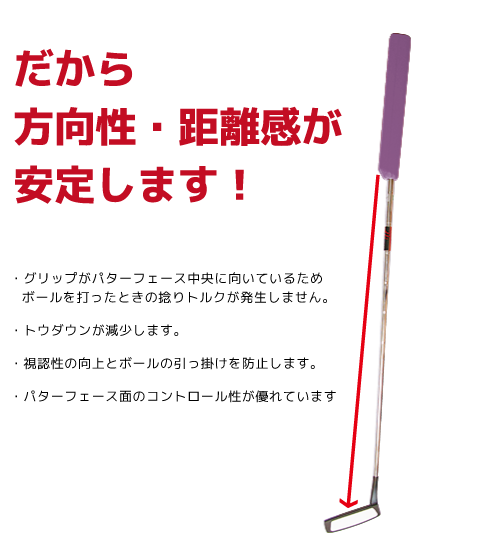 グリップの向きをパターフェース面中央に向けられます。